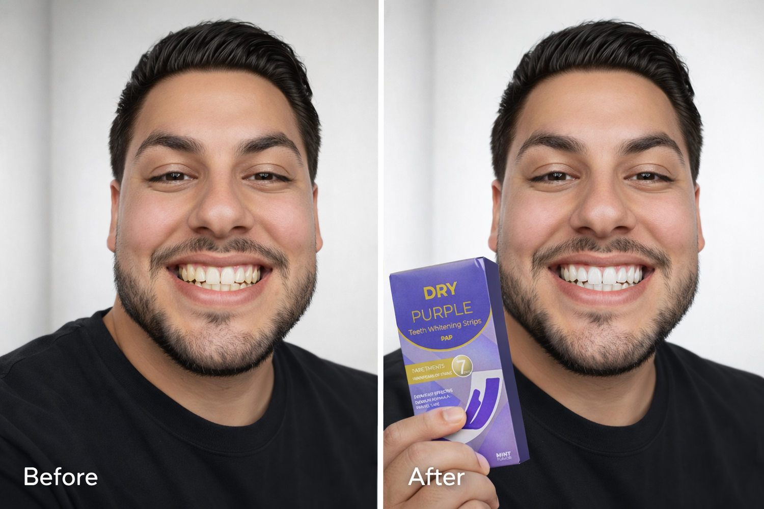 Experience dual-action whitening with a PAP formula that targets stain compounds while purple colour correction instantly neutralises yellow tones. These peroxide-free strips are simple to use, comfortable to wear, and designed to visibly brighten your smile in just days.